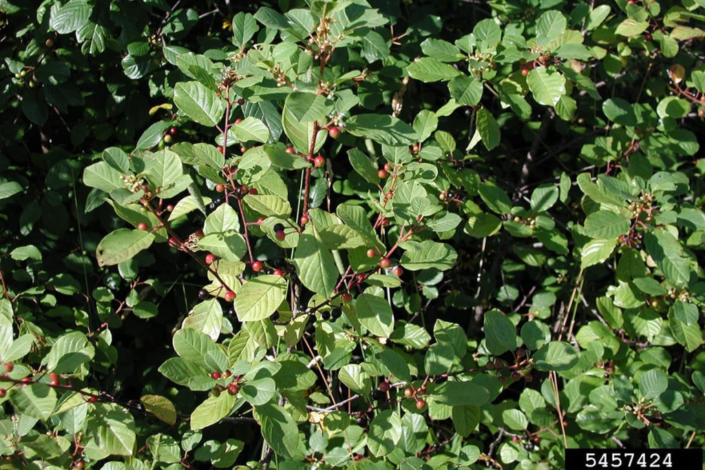 Glossy Buckthorn (Frangula alnus) and Common Buckthorn (Rhamnus cathartica)—not yet widespread, but on our radar