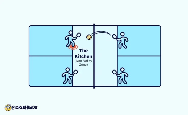 - The non-volley zone or “kitchen” is a 7-foot area on both sides of the net.